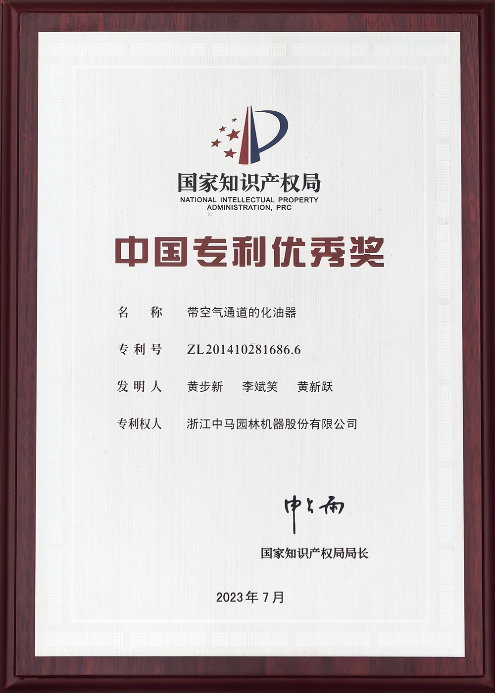 中國(guó)專利優(yōu)秀獎(jiǎng)